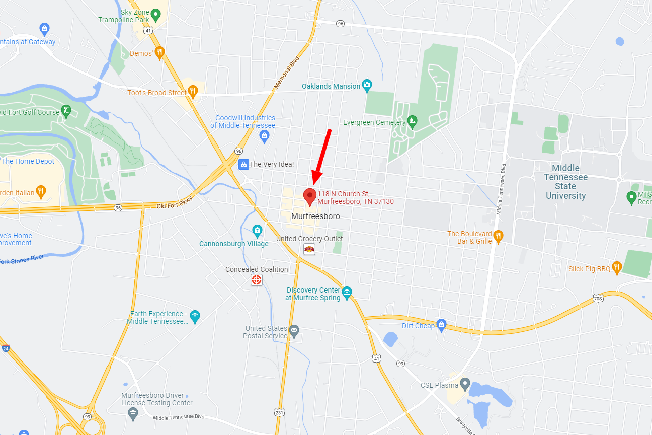 - 118 N Church Street is located on the Square in downtown Murfreesboro.