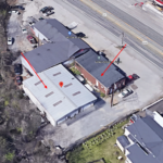 The concrete block building that fronts Dickerson Road has 2,930 SF of space between two levels. This building can continue to be used for storage or it could be demolished to make room for more surface parking.